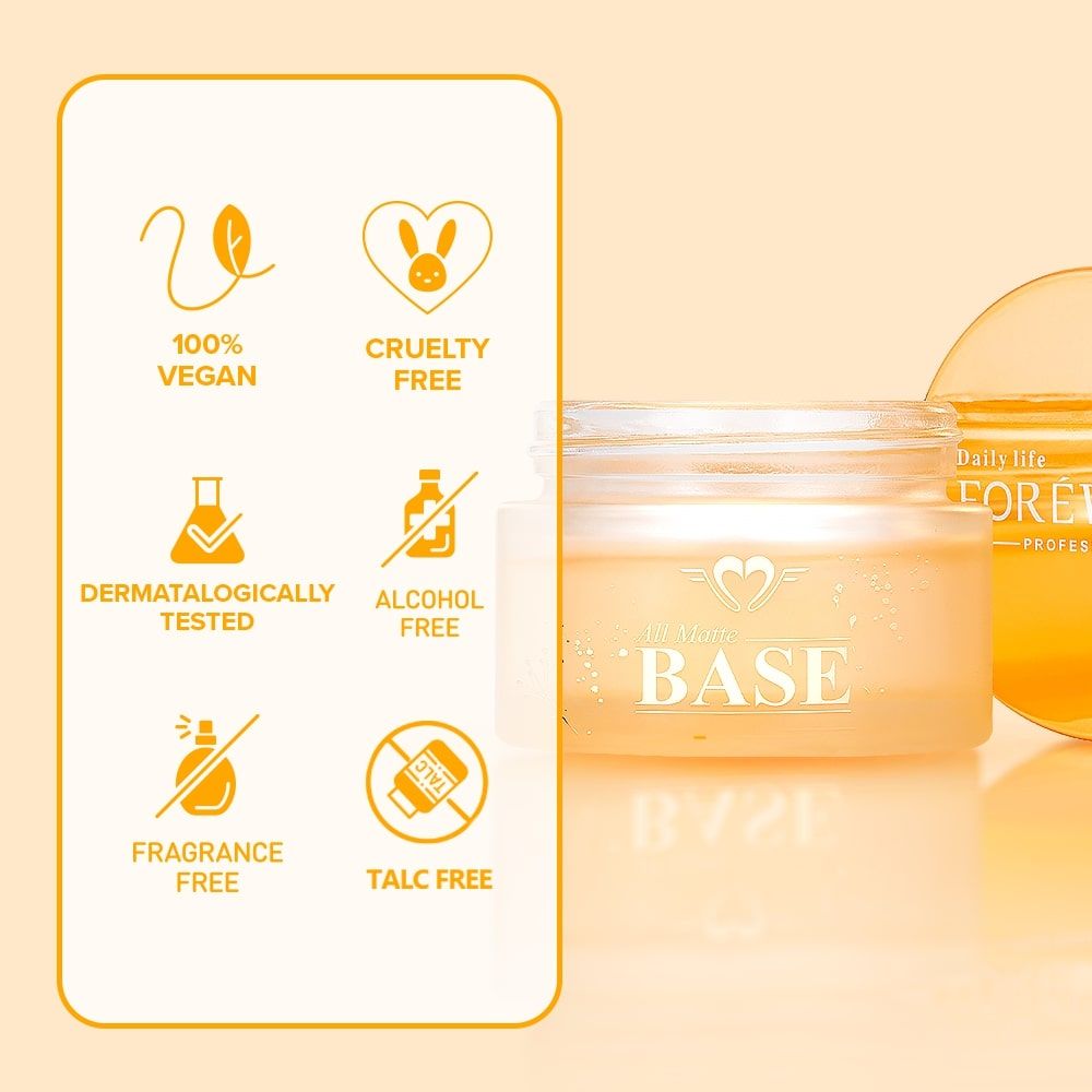 Create a flawless, oil-free canvas with the Forever52 All Matte Base (AMB001). This lightweight mattifying primer is designed to control excess oil and blur the appearance of pores and fine lines. Its smooth, velvety texture preps your skin for seamless makeup application and extends the wear of your foundation throughout the day.