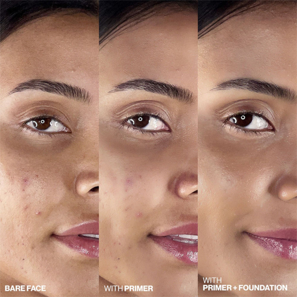 Apply a small amount evenly across the face, focusing on areas with texture or pores.